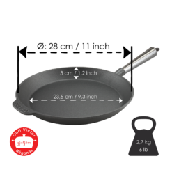 Gusseisenpfannen bieten ein hervorragendes Kochverhalten, optimale Wärmeleitung und eine strapazierfähige Oberfläche, die ein Leben lang hält. Auch der natürliche Anti-Haft-Effekt, der sich bei diesen Pfannen ohne jegliche Kunststoffbeschichtung mit der Zeit bildet, wird von Köchen auf der ganzen Welt geschätzt.
