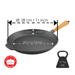 Gusseisenpfannen bieten ein hervorragendes Kochverhalten, optimale Wärmeleitung und eine strapazierfähige Oberfläche, die ein Leben lang hält. Auch der natürliche Anti-Haft-Effekt, der sich bei diesen Pfannen ohne jegliche Kunststoffbeschichtung mit der Zeit bildet, wird von Köchen auf der ganzen Welt geschätzt.