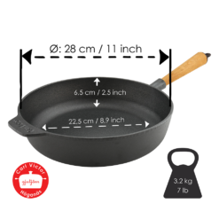 Durch den abgedrehten Boden können Sie diese Pfanne auf allen Herdarten verwenden – egal ob auf Induktions-, Ceran-, Gas-, Halogen- oder Elektroherden. Weder große Hitze, noch spitzes Besteck wird in diesem Gusseisenkochgeschirr Schaden anrichten – es ist völlig unbeschichtet und absolut kratzfest.